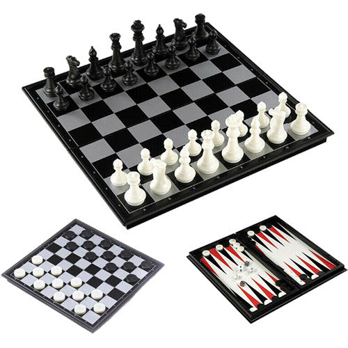 Jogo Tabuleiro 3 em 1 - Xadrez, Damas e Gamão